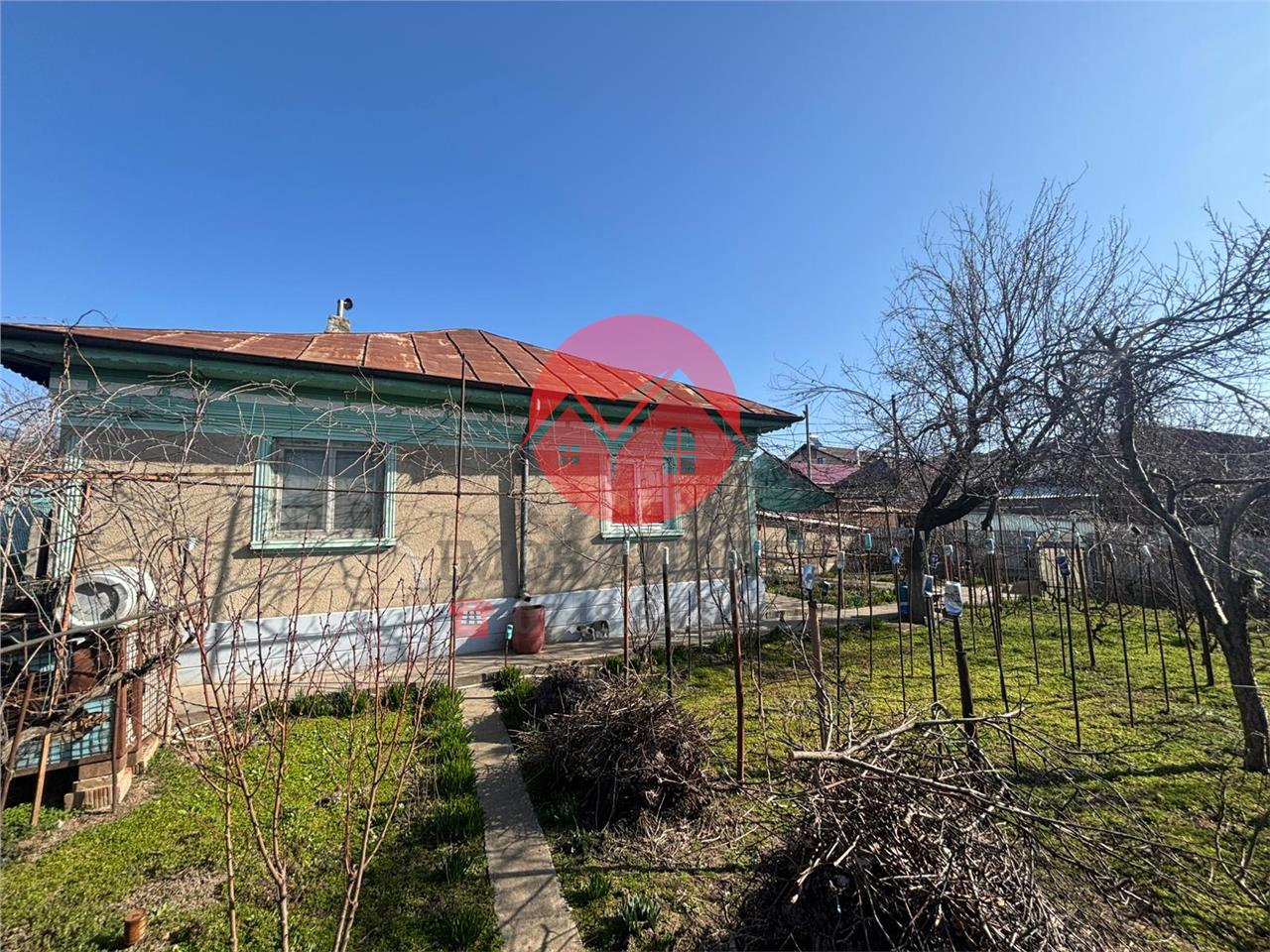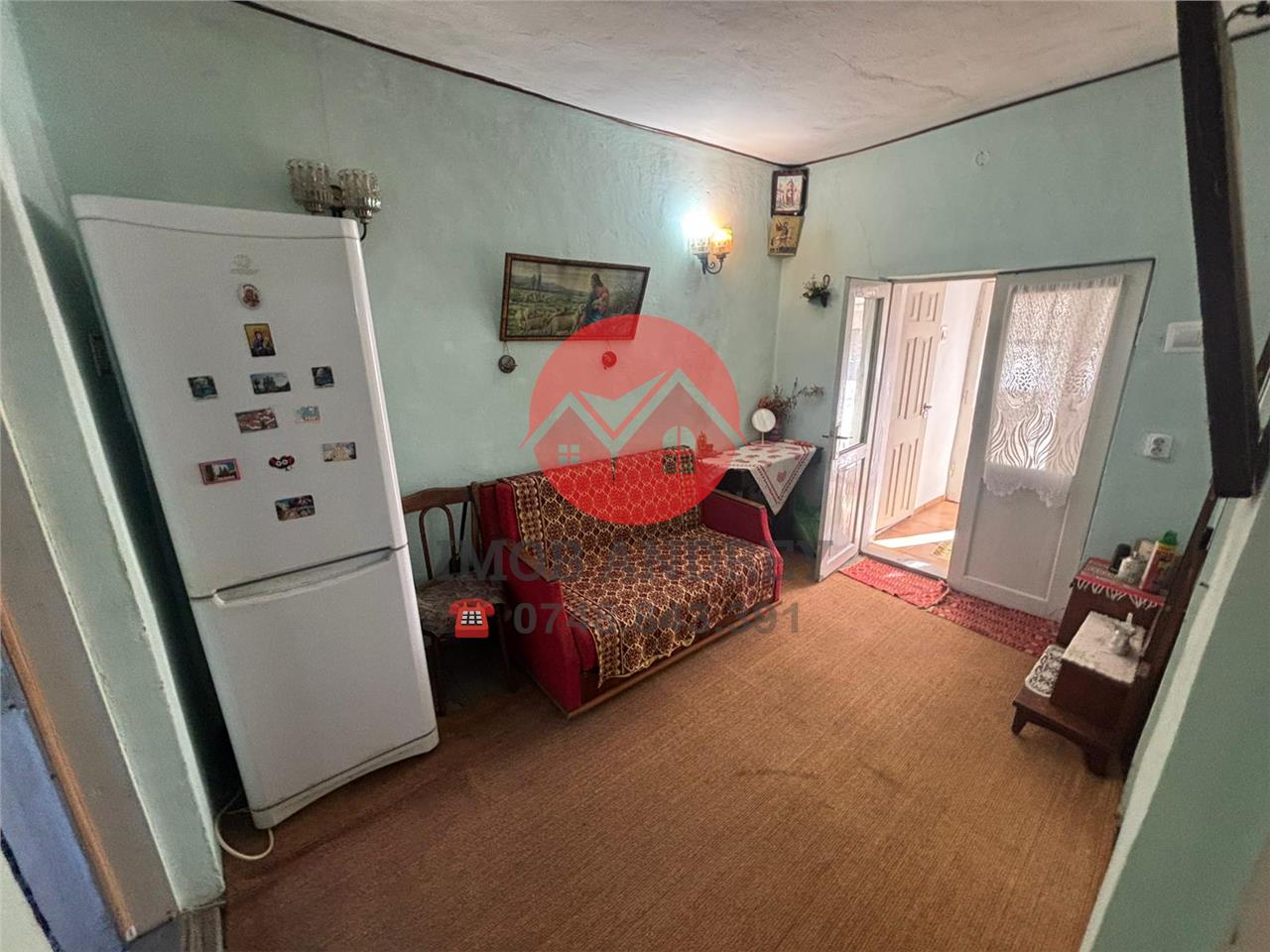Construcția este din chirpici, iar interiorul este parțial renovat, oferind posibilitatea de personalizare după preferințe. Pe teren se mai află două anexe, ideale pentru depozitare sau alte utilizări gospodărești.